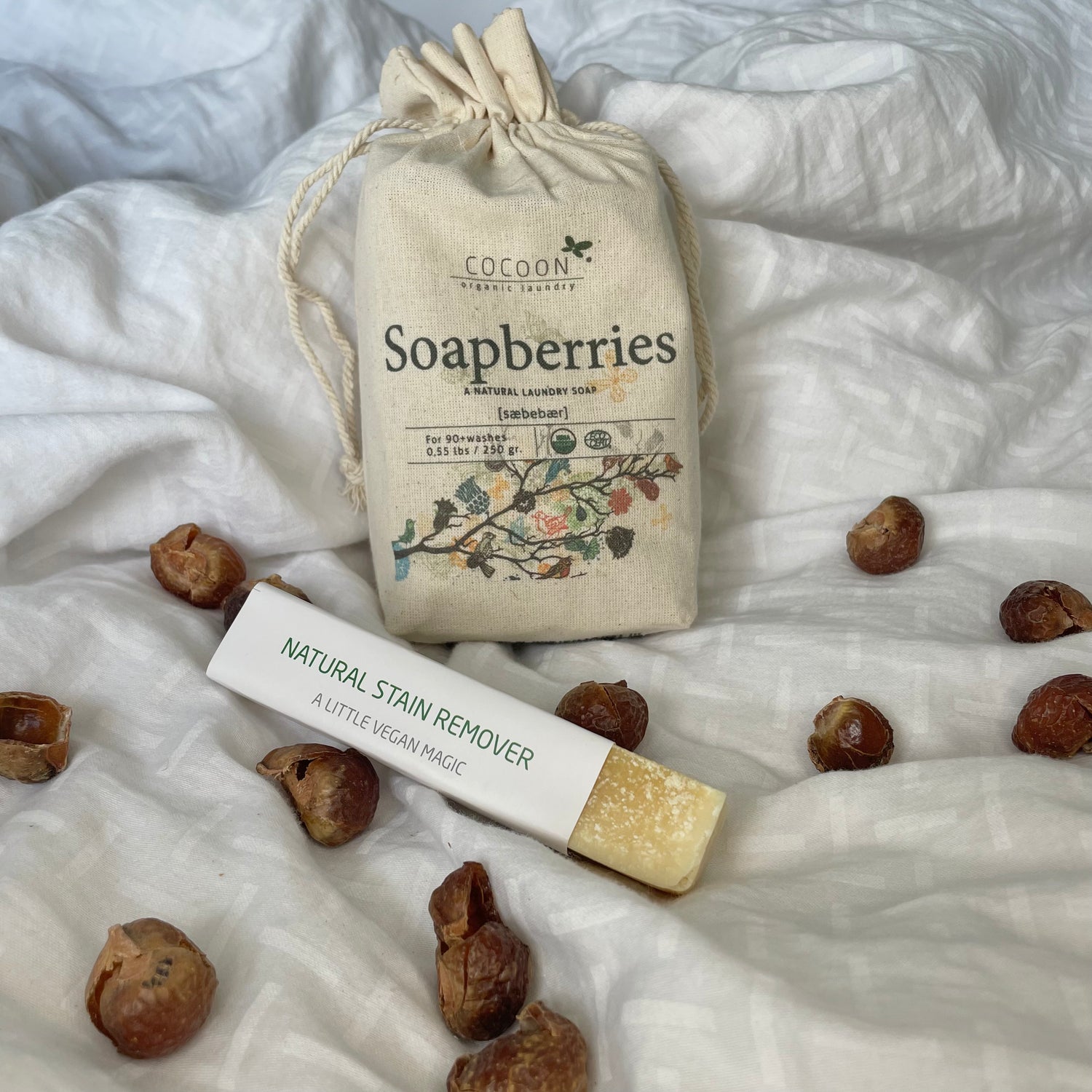 Sæbebær er et naturligt alternativ til almindeligt kemikaliebaseret vaskemiddel. Bærrene indeholder saponin, som er et naturligt overfladeaktivt stof, der effektivt kan opløse og fjerne snavs fra overflader. Sæbebærrene kan ikke kun bruges til tøjvask, men også til rengøring, shampoo, barberskum, håndvask mv. De er effektive og skånsomme mod dit tøj, din hud og vaskemaskinen. Derudover vil du opleve, at dit tøj vil bevare dets struktur og farver bedre end når du bruger kemikaliebaseret vaskemiddel. Et sandt win-win for ALLE
