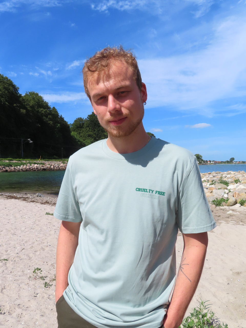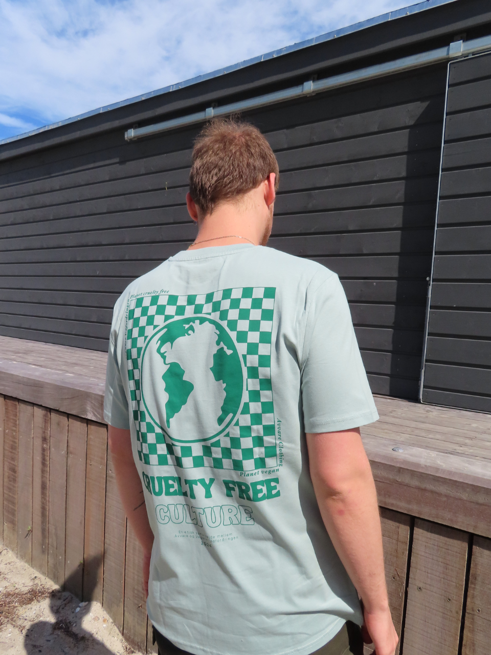 T-shirten er lavet af stof af økologisk oprindelse og er vegansk godkendt. Det super bløde og behagelige stof er både godt for dig og planeten. T-shirten er i normalt fit med stort print på ryggen, som selvfølgelig også er vegansk. T-shirten kommer i en hvid og grøn model.