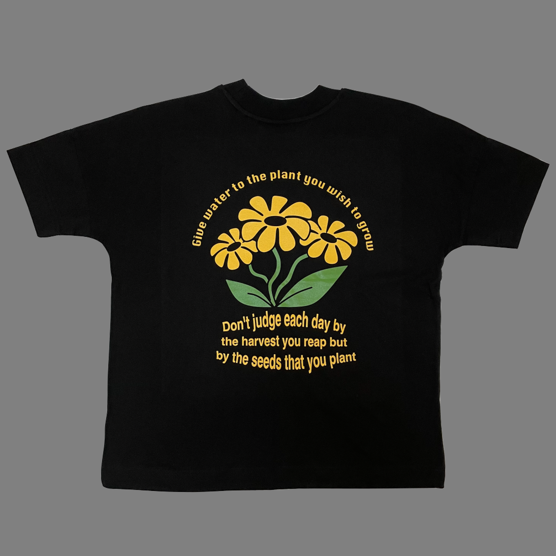 The Black Sunflower t-shirt, like all the other products in Collection No. 3, are made of organic nature and are vegan approved. The super soft and comfortable fabric is both good for you and the planet. The t-shirt is oversized and with a boxy fit, with a big print on the back. The t-shirt is available in white and black